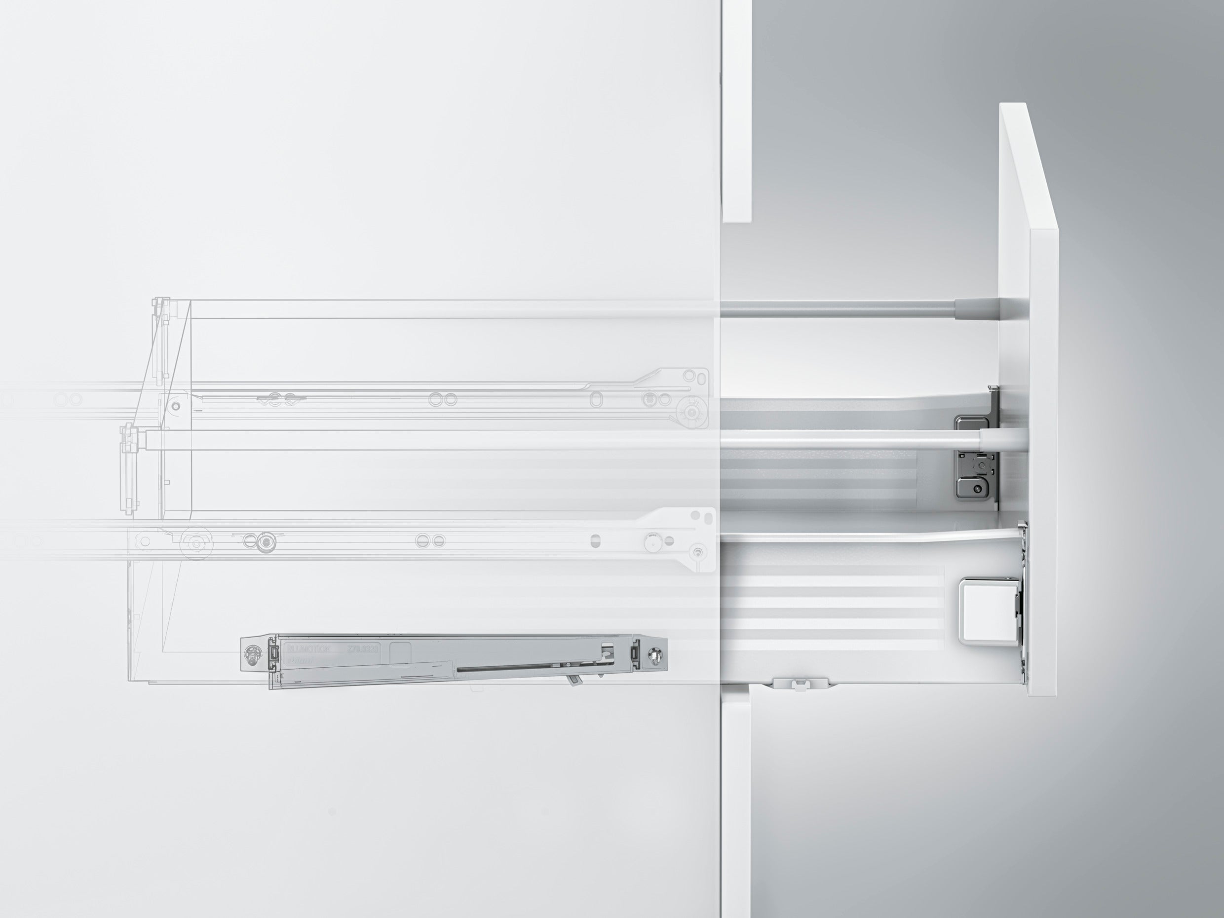El sistema metabox con un guardacuerpo adicional proporciona mayor soporte al frente de gaveta.