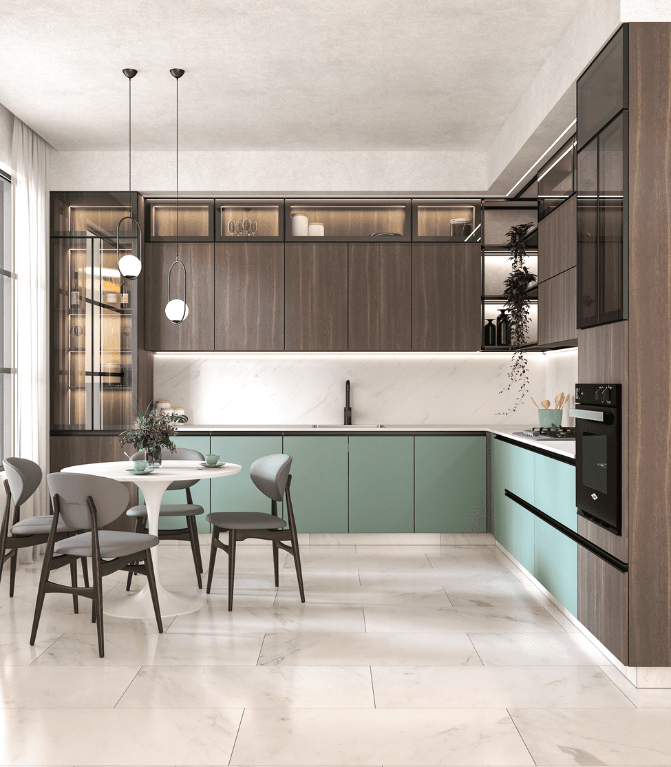 Empleamos melamina Pelíkano, un material ecuatoriano de alta calidad que proporciona más de 20 años de vida útil y gran resistencia al desgaste, humedad y calor.